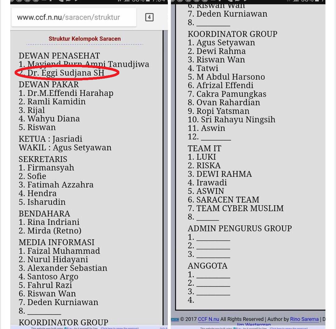 Ada Nama Eggi Sudjana Di Struktur Saracen, Akankah Ikut Tercyduk??