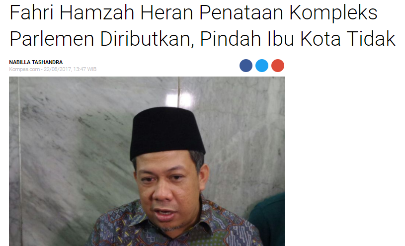 Fahri Membandingkan Pembangunan Kompleks Parlemen dengan Wacana Pemindahan Ibu Kota, DPR Kembalilah Ke Jalan yang Benar