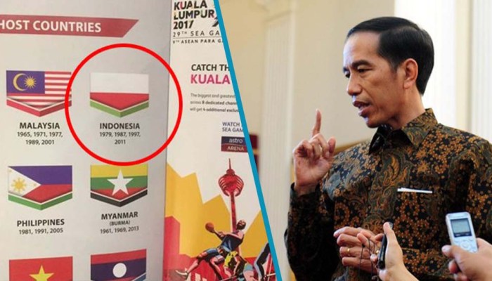 Bendera merah putih yang terbalik dan Presiden Jokowi Bendera Indonesia terbalik di buku panduan Sea games buatan Malaysia? Tidak sulit untuk mengatakannya sebagai sebuah kesengajaan. Tak hanya dibuku acara, koran-koran, tetapi juga di berbagai media informasi Malaysia, bendera merah...