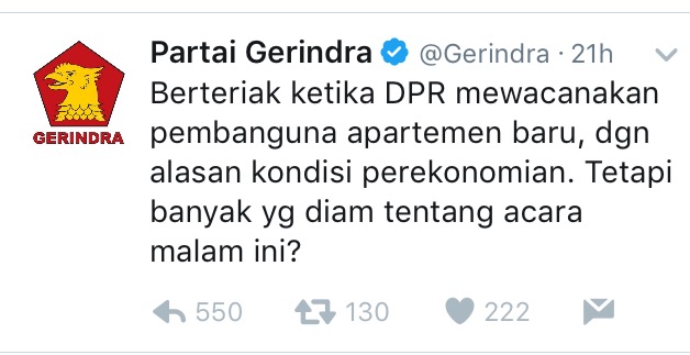 Menggelikan, Gerindra Mewek Bandingkan Countdown Asian Games Dengan Pembangunan Gedung DPR
