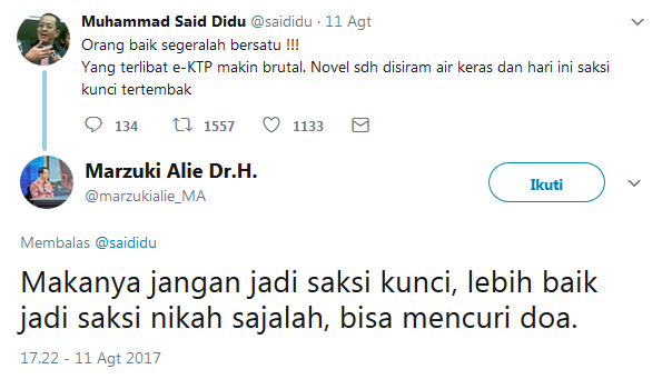 Tidak ada empati dan simpati bahkan etika dari komentar yang disampaikan oleh mantan Ketua DRP 2009-2014 yang juga adalah politisi Partai Demokrat, Marzuki Alie. Marzuki yang juga termasuk dari kumpulan orang-orang yang diduga terlibat dalam kasus mega korupsi E-KTP,...