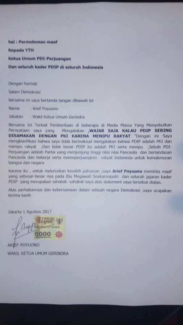 Waketum Gerindra: Wajar Saja PDIP Sering Disamakan Dengan PKI, Lalu Minta Maaf Pakai Meterai